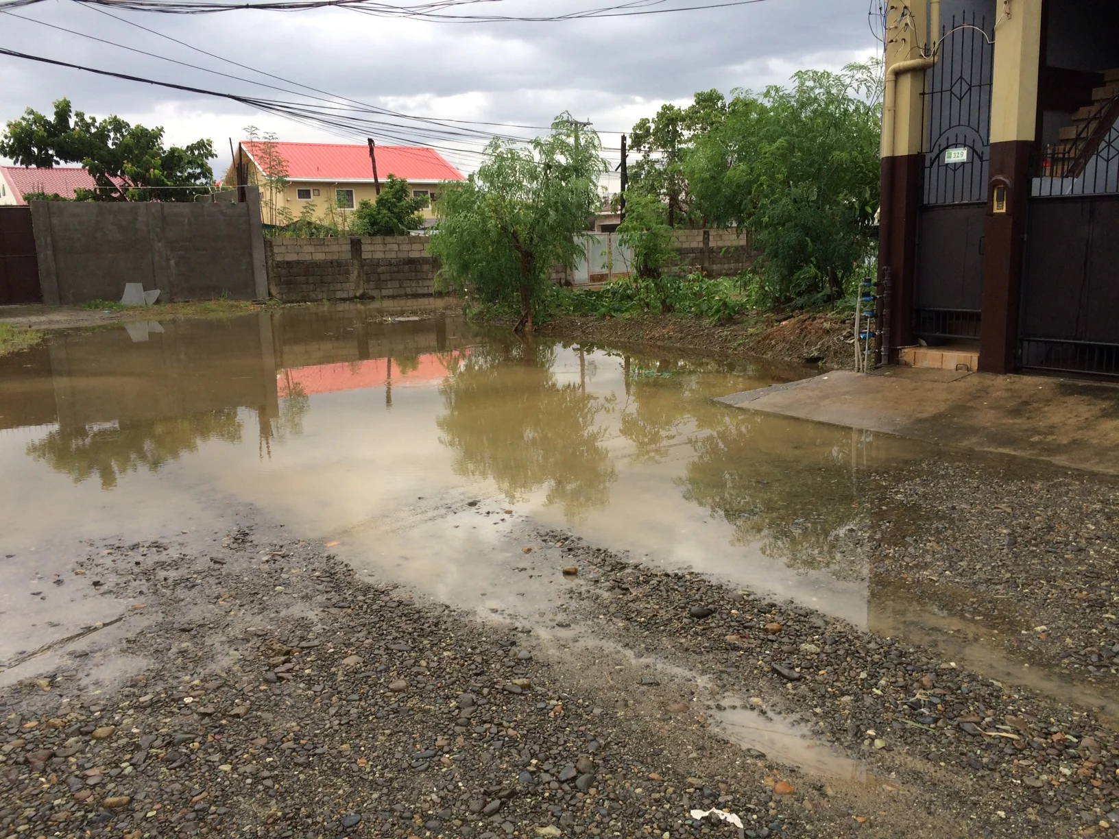 The biggest problem will be flooding later Sunday and into Monday as the rain fills the river from the mountains. This photo is our street at 5:00 pm Sunday. Our street leads to another street which floods easily. If we go the other direction there is another sunken area that will also be flooded, so we're just staying home until Monday. All Missionary apartments are out of the flood zones and so except for some leaky roofs, everyone should be OK today.