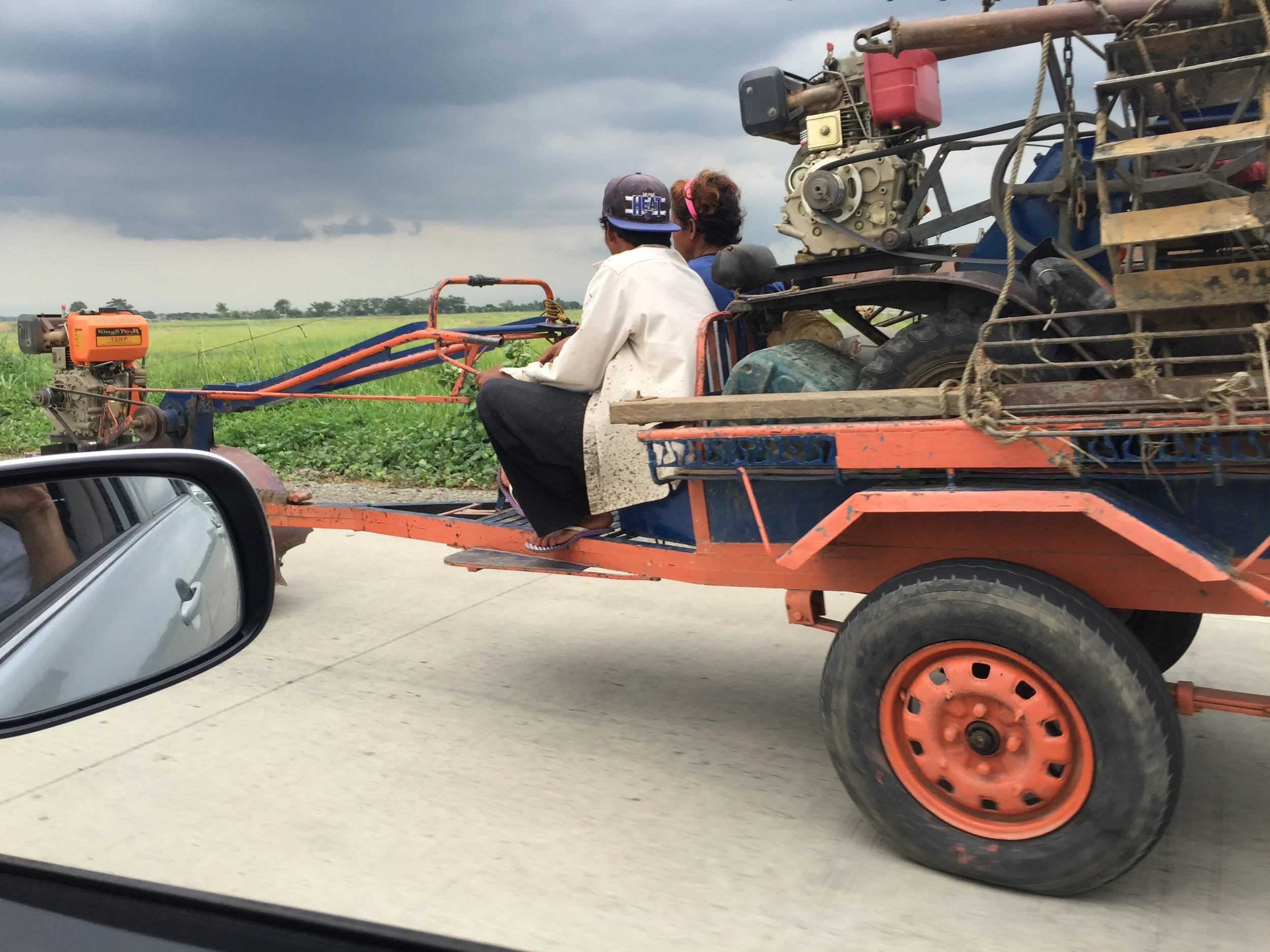The rice farmers have a universal tractor that they use for everything. They may be out in the rice paddies plowing the muddy fields. An hour later they are pulling a cart on the highway transporting people and goods at 3 kph. Licensing doesn't seem to be an issue on rural vehicles.