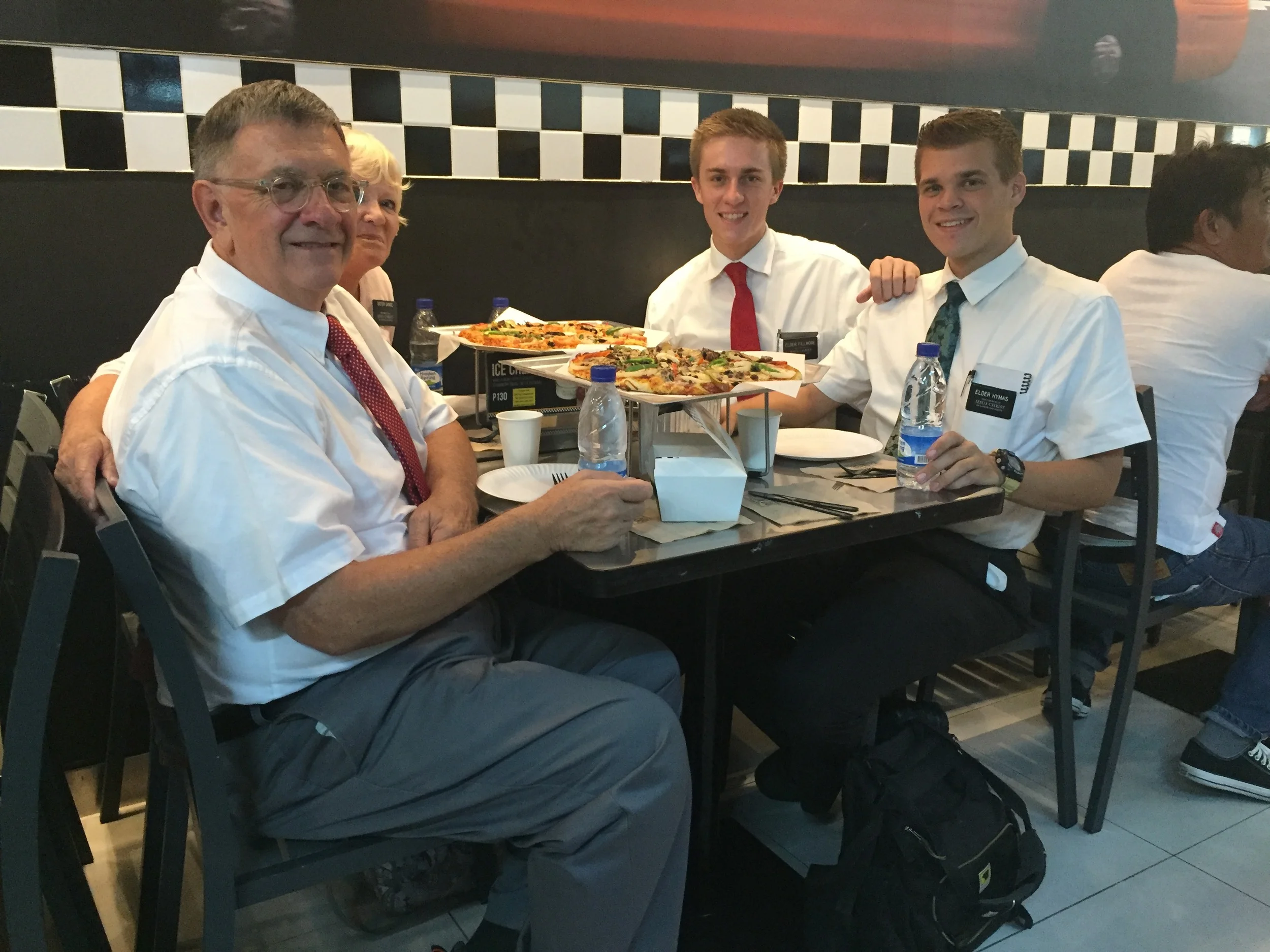 We invited the local Zone leaders over for dinner since they will be departing soon but Elder Dansie didn't want to cook so we went to Yellow Cab pizza instead. It was P-day and Elder Fillmore's Birthday.